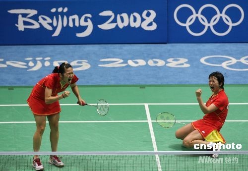 8月15日晚,中國組合魏軼力、張亞雯在北京奧運會羽毛球女子雙打銅牌爭奪戰(zhàn)中以2比0戰(zhàn)勝日本組合前田美順、末綱聰子,奪得銅牌。中新社發(fā) 武仲林 攝
