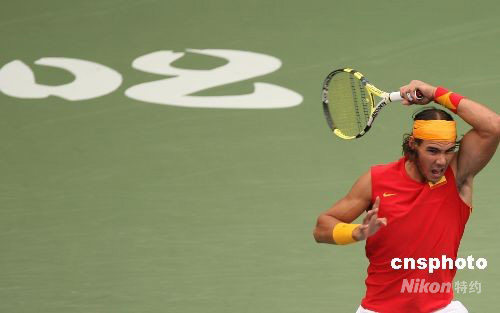 8月17日,西班牙選手納達(dá)爾以3:0擊敗智利“大炮”岡薩雷斯,奪得冠軍。圖為納達(dá)爾在比賽中。 中新社發(fā) 武仲林 攝
