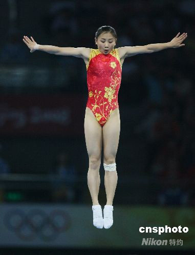 何雯娜在北京奧運會女子蹦床比賽中。中新社發(fā) 武仲林 攝