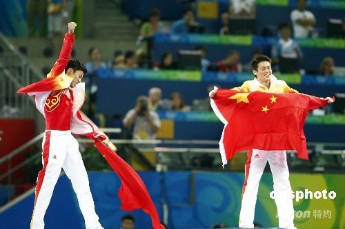 圖:陸春龍奪得北京奧運(yùn)會(huì)男子蹦床金牌