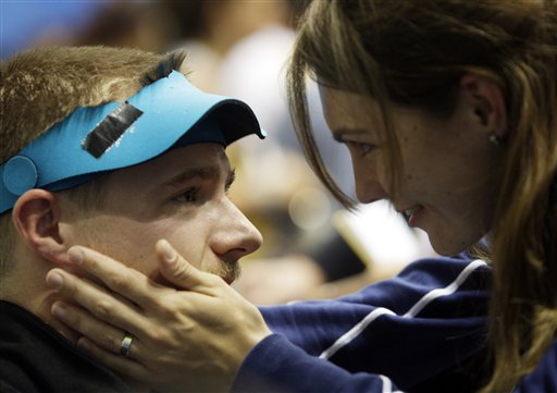 全場愕然。一個令人難忘的畫面出現了:埃蒙斯的妻子卡特琳娜先是茫然,然后眼神柔和下來,探身上前,將埃蒙斯攬在懷里。一會兒,埃蒙斯回過神來,與其他射手和裁判打過招呼,走出去,中途不停地接受記者的問詢。埃蒙斯還帶著笑容,雖然有些苦澀。