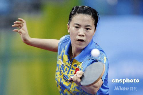 8月21日,北京奧運會乒乓球女子單打第四輪的比賽在北京大學體育館進行,中國選手郭躍、王楠分別戰勝對手晉級下一輪比賽。中新社發 盛佳鵬 攝