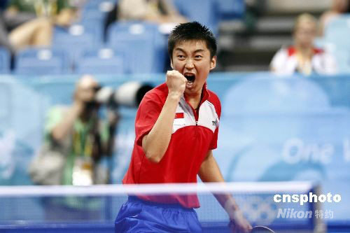 8月21日,北京奧運會乒乓球男子單打第三輪的比賽在北京大學體育館進行,中華臺北選手莊智淵3比4不敵新加坡選手揚子,無緣下一輪比賽。中新社發 盛佳鵬 攝