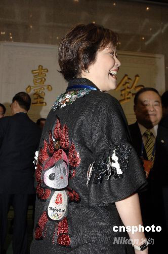 泰國華僑丘夏莉身穿“福娃裝”亮相釣魚臺國賓館。中新社發 王東明 攝