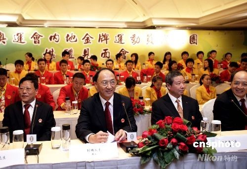 北京奧運會金牌運動員代表團八月二十九日至三十一日訪問香港。八月二十九日下午代表團抵達香港后舉行媒體見面會。中新社發(fā) 張勤 攝
