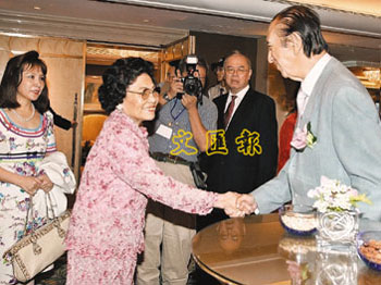 郭鄺肖卿和何鴻燊握手致意。(圖片來源:文匯報)