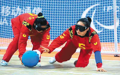 在殘奧會的第一個比賽日,中國女子盲人門球隊在首場比賽中以5∶3戰(zhàn)勝巴西隊,迎來開門紅。許娟作為場上3名隊員之一,打滿了全場。比賽中,雖然她20次投球均未能攻破對方大門,但她成功地16次用身體擋住了對方的進攻,為中國隊獲勝立下功勞。