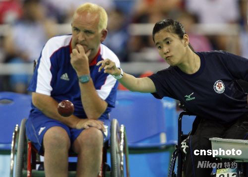 9月9日,中國(guó)香港選手郭海瑩在硬地滾球混合單打-BC2決賽中,戰(zhàn)勝英國(guó)選手奈杰爾-莫里,為中國(guó)香港隊(duì)摘得殘奧會(huì)首枚金牌。中新社發(fā) 杜洋 攝