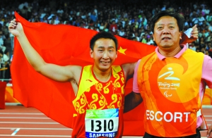 “這是我頭一次參加殘奧會,拿金牌、破紀錄,也算給我的教練一份驚喜吧,我想這是最好的教師節(jié)禮物,”雖然父母、親友都在看臺上助陣,朱鵬凱還是最想把這塊金牌獻給自己的教練韓松,“是教練發(fā)現(xiàn)了我,從2003年到現(xiàn)在,我一直跟著他練,5年多了他為我付出很多,可以說除了睡覺,我們倆幾乎一直綁在一起。”朱鵬凱笑著說。