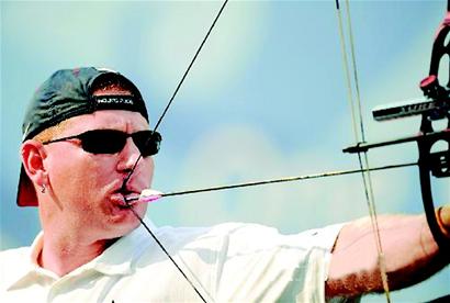 美國選手杰夫·法布里是個(gè)射箭好手,可惜他卻不能用自己的兩只手來射箭。在他15歲的時(shí)候,一次摩托車事故使得他失去了右手和右腿。后來,他開始練習(xí)射箭。他裝了一條鐵臂,鉤子手發(fā)出幽幽的金屬光澤,充滿殺氣。在受傷20年之后,他出現(xiàn)在了北京殘奧會上。
