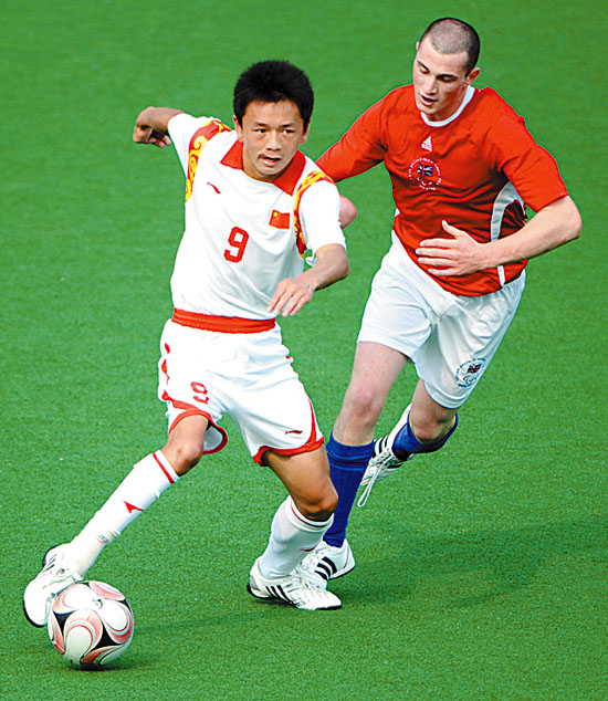 平均年齡20歲出頭、集訓(xùn)時間不到兩年的中國腦癱足球隊(duì),今天以2∶10負(fù)于英國隊(duì)。他們賽前就知道自己遠(yuǎn)不是那些平均年齡近40歲、配合時間長達(dá)十余年的對手,但他們堅(jiān)持拼完整場比賽,他們只想告訴觀眾,他們絕不會放棄。