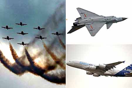 印度"陽光"特技飛行隊航展上進行特技表演