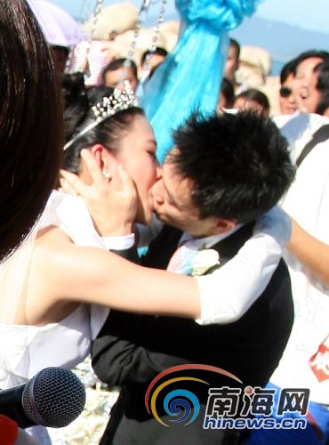 圖:新郎楊威婚禮現場深情親吻新娘