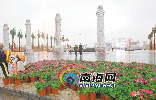 近一個星期來,儋州城區張燈結彩、百花綻放喜迎歡樂節,城區內懸掛大紅燈籠5000余個、燈桿廣告旗2000余幅,擺放鮮花15萬盆。(李關平 黃遠舶 郭樹護)