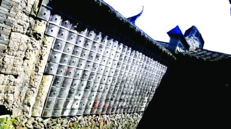 記者還注意到,寨子內(nèi)還有不少機(jī)關(guān),城墻下半部有幾十個(gè)小洞,用來安放照明燈具便于夜間行走。在城墻的上半部,每隔十幾米就有一個(gè)外小內(nèi)大的喇叭形梯形窗戶,站在窗前,可以清楚觀察外面動(dòng)靜,而屋外看不到里面的情況。