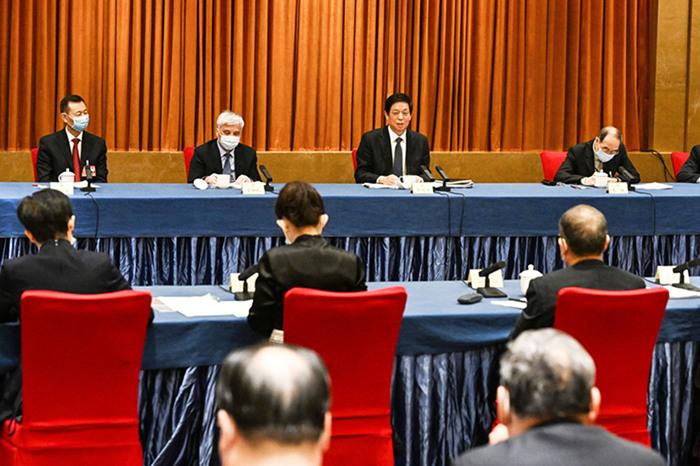 王滬寧看望共青團、總工會、婦聯、青聯界委員并參加討論