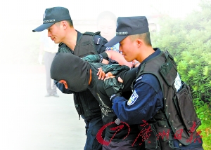 “快,注意,嫌疑犯到了。”剛跳下車尚未站穩(wěn)的警察對圍上來的戰(zhàn)友說。