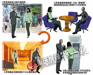 “哎呀,太麻煩了,還是回酒店讓我秘書弄算了。”羅某提議。于是,張黎又跟著羅某回到酒店。