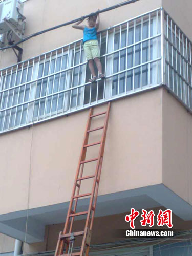 中新網焦作8月12日電 (記者 李金輝 通訊員 蔣旭)8月11日12點30分許,河南焦作市馬村區郵政局附近一小區6歲女童被父母反鎖家中,在家玩耍時不慎從三樓窗戶掉下,被卡在二樓防護欄與電話線之間。