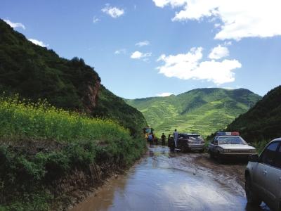 泥石流沖毀路面 □晚報(bào)特派記者牛小亞攝