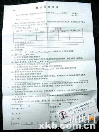 記者又問:“我們能不能簽合同呢?”葉站長(zhǎng)說:“當(dāng)然可以簽。”隨后他當(dāng)場(chǎng)拿出一份《批次購(gòu)油合同》,合同上的“供方”就是“中國(guó)石油化工股份有限公司廣東廣州石油分公司加油站”。“這些都是正式合同,提貨單位也是我們公司的正式提貨單,發(fā)票也是正式發(fā)票,合作愉快最重要。”葉站長(zhǎng)說。