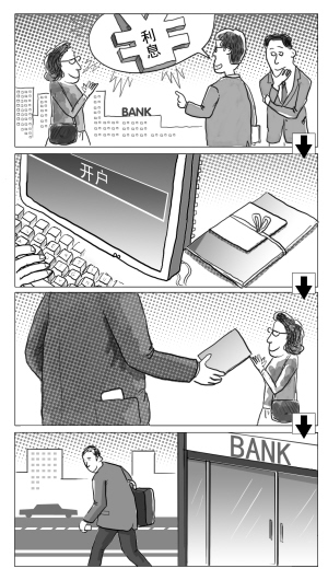 孫先生稱,妻子教課的班上有一名旁聽生張宇(化名),兩人平時(shí)關(guān)系不錯(cuò)。今年3月,張宇建議楊女士到工行存款理財(cái),通過張所在單位辦理,兩年后可以得到“較高的利息”。由于是“集體業(yè)務(wù)”,楊女士不能自己辦理,要將身份證給張讓其代辦,但存折戶名保證是楊女士的。