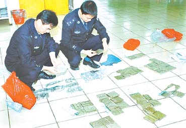 10月18日,一名姓梁的澳門女旅客從拱北口岸旅檢通道進境時,引起拱北海關(guān)旅檢關(guān)員的注意。關(guān)員依法對其進行檢查,結(jié)果在該旅客的腹部、腿部發(fā)現(xiàn)用透明膠布捆綁著10塊重金屬,重13.5千克,均是金屬鎳。走私鎳這種少見的稀有金屬,引起了海關(guān)人員的關(guān)注。隨后幾天,拱北海關(guān)又查獲了同樣的走私鎳塊案件,單次走私量都在10千克左右。