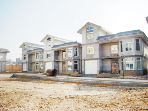藍田縣國土資源局新家屬院位于該縣黃金地段的北環路邊、汽車客運站附近。群眾反映的9棟住宅就建在該局的新家屬院里。記者來到這里時,兩棟家屬樓和9棟“低矮建筑”都已完工,已經進入裝修階段。家屬區門房墻上張貼的一份蓋有“藍田縣國土資源局物業辦”印章的《通知》顯示,這個小區11月12日給住戶發了鑰匙,11月17日試水。記者看到,9棟“低矮建筑”都是青灰色仿古屋頂,同一品牌的防盜門,一層都建有車庫,不僅外觀完全一致,面積大小也完全相同。一位正在裝修的該縣國土局工作人員的家屬告訴記者,兩棟單元樓每戶130多平方米,是集資建房;那些“別墅”是給局領導修建的住房,是3層建筑,三四百平方米。有知情人說,國土局里并沒有9名局級干部,多余的“別墅”是給縣上領導修建的。私人要蓋這樣的房屋費用會低一點,但至少也要花30多萬元。