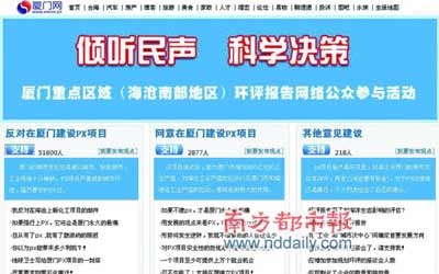 反對或支持在廈門建設PX項目的網上投票只進行了1天。