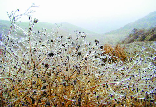 湘西自治州龍山縣八面山近日出現(xiàn)南方罕見的冰凌奇觀。八面山毗鄰里耶古城,是湖南通向渝東的一道天然屏障,平均海拔1000余米,最高峰1414.5米,四面懸崖絕壁,總面積達到52平方公里,為中國南方最大的高山臺地,有著廣闊的高山優(yōu)良牧場,被譽為“中國南方空中草原”。(易長松 攝影報道)