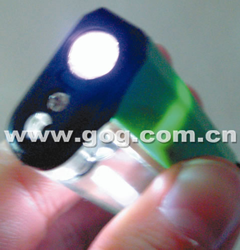 看似一個普通的打火機,可是只要輕輕撥動上面的一個小開關,一張黃色的圖片就會投影在所照射的物體上。18日晚,記者途經筑城大營路時,在人行道上看到有人兜售這種“黃色火機”。