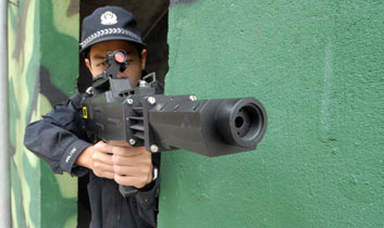 這段驚心動魄的畫面,是昨日記者在泉州市公安局巡邏特警支隊特警大隊,看到特警使用一種新型的警用裝備——激光眩目槍制服“武瘋子”的模擬現場。