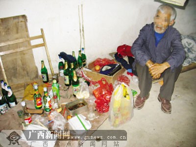 該男子就住在小賣部旁邊的一矮小瓦房內。記者在門前看見,屋內的燈光非常昏暗,屋內一角擺滿了啤酒瓶和白酒瓶等,其中一名白發老者正坐在一張床上,數著散落在地上的一堆零錢。不久,燒傷男子來到小賣部,買了3瓶啤酒。記者詢問3人來自何處,但3人都沒有回答。