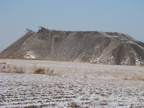站在山坡的高處,可以看到七煤集團向陽煤礦的很多礦井,這些礦井,都有一個相同的特點,就是都有數目不等的廢礦石(煤矸石)山,它們占用的就是村民賴以生存的承包田。