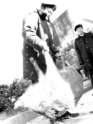 保安隊長陸先生趕來,見到被打死的野豬,很興奮。他說,小區(qū)里最近經(jīng)常有野豬出沒,但打死野豬,這還是第一次。