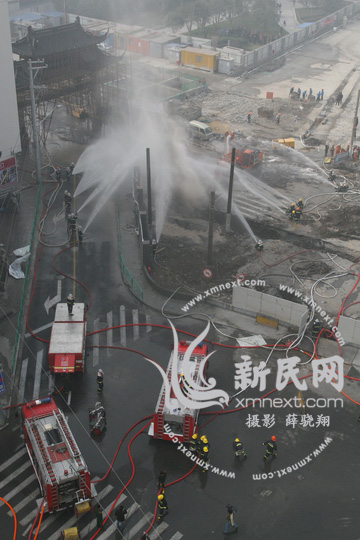 薛驍翔介紹,目前已有6輛消防車抵達現場,消防隊員正用11個消防水龍頭滅火。但現在火勢仍然很大,大火竄至3層樓高,現場撲救難度較大。(新民網 楊揚)