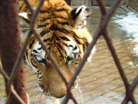 許昌市動物園的相關負責人賈宏偉介紹,這只東北虎系雌性,十八九歲、體重100公斤左右,2005年患上白內障,此后病情越來越重,現在已經完全失明。按照老虎的壽命,十八九歲已經屬于老年階段了,它患的白內障也屬于老年性疾病,不過這種病在老虎中較為少見。