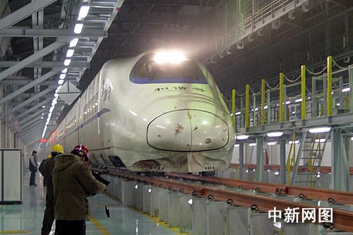 “為了確保他們(動(dòng)車)的安全運(yùn)營(yíng),每?jī)商旎蜻\(yùn)行四千公里后,就要進(jìn)行一級(jí)檢修。”動(dòng)車組運(yùn)行所所長(zhǎng)武蘇永說(shuō),檢修庫(kù)就像醫(yī)生的“聽診器”一樣,當(dāng)動(dòng)車經(jīng)過(guò)時(shí),即可檢測(cè)到車輪上的毛病、故障。