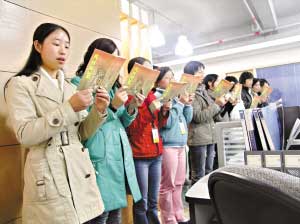 1月30日早上9時(shí),東莞市東城區(qū)一家寫(xiě)字樓內(nèi)傳出了朗朗的讀書(shū)聲。幾十名員工站在一起大聲誦讀《弟子規(guī)》。這一寫(xiě)字樓里出現(xiàn)的奇特場(chǎng)景源于公司的一項(xiàng)規(guī)定:每天早上9時(shí)到9時(shí)15分,所有員工都要讀書(shū)15分鐘的國(guó)學(xué)經(jīng)典。