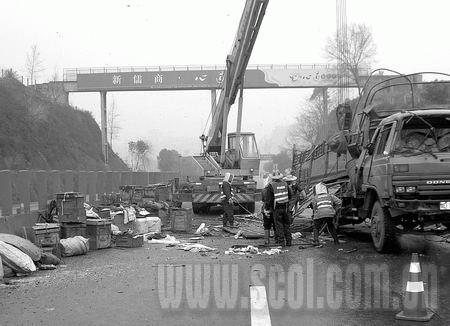 事故現(xiàn)場,一名中年男子臉色鐵青,一言不發(fā)地盯著滿天飛舞的蜜蜂發(fā)愣。他就是大貨車司機劉強。“3天前,云南養(yǎng)蜂專業(yè)戶厲煥平一行4人,租用我的車幫他們把蜜蜂從昆明運往德陽放養(yǎng)。”昨日上午7時,當(dāng)他開車行至成渝高速資中段時,突然感覺方向盤不穩(wěn),大貨車發(fā)生劇烈抖動。突然聽到坐在駕駛室的厲老板說,后面有個車輪快跑脫了。厲老板話還沒說完,貨車一陣劇烈的抖動,來了個原地180度調(diào)頭,“轟”一聲側(cè)翻于公路上。等他們下車一看,整個后右輪竟飛到了幾十米開外,大家當(dāng)場嚇懵了。車上裝載的蜂箱撒落在地上,霎時間,蜂箱內(nèi)成群結(jié)隊的蜜蜂鋪天蓋地地飛了出來。劫后余生的蜜蜂老板厲煥平,望著滿天亂飛、遍地蜂尸的場面,心痛得不得了:“這批蜜蜂沒買保險,哪個賠我的損失喲!”(作者: 楊元祿 高冰潔)