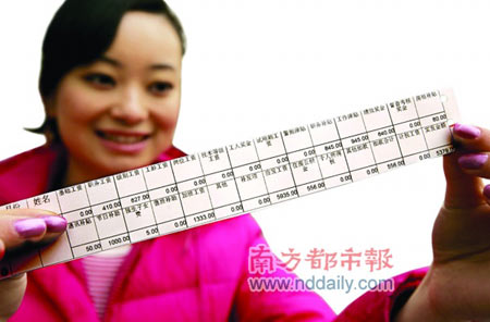 “日前,廣州一家報紙在一個討論薪酬問題的版面上用了一張新聞圖片,網友驚訝地發現圖片中人物手持的工資條顯示其當月收入5935元,個人所得稅一欄卻顯示為0.00.因為工資條上有職務工資、級別工資、警銜津貼等項目,很多網友認為這是一張廣州市公務員的工資條,并推論公務員不用交個稅。