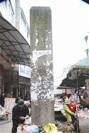 昨日記者專程來到中和鎮政府門前30米的一個街道拐角處看到,一塊高約5米的正方形石柱矗立在街道中央,石柱的正前方刻有“抗美援朝烈士紀念碑”9個楷體大字。碑的右面書有“謝興發、劉元明烈士,1951年12月30日敬立”字樣。紀念碑的四面都貼了不少廣告單,有“住房出租”、有“治療結核病”等,還有一些則是“性病?啤钡鹊。紀念碑基座上,還有生意人擺放了不少干雜貨物在此兜售。
