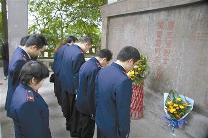 昨日,在此陵墓前,岳池縣國稅局的干部們前來悼念,并打掃了陵墓前的清潔衛生。對于父母的烈士陵墓,廖亞彬坦言:“政府對我父母的英勇事跡沒有忘記,也經常組織人員前來祭奠,我們很滿意!