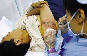 為證明自己深深的愛,27歲的張曉光(化名)將女友的名字刺上了左手胳膊,但兩人終究黯然分手。忍受了文身給自己生活、工作帶來的諸多不便后,前日張曉光來到重醫附一院整形美容科,決定將舊痕徹底清除迎接新生。