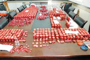 前日南開警方搗毀一處制販假證窩點,在窩點擺滿各種印鑒、公章多達1000余枚,大到國家部委大印,小到基層派出所民警名章,而旁邊堆放的數千冊高校畢業證書等各類證件半成品更是讓人目瞪口呆。
