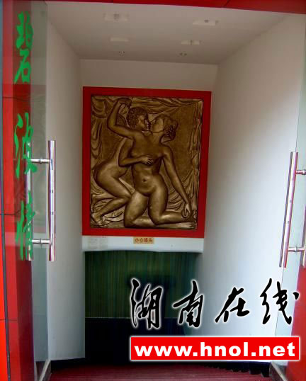 據網友“lvyan985”爆料,該休閑會所位于長沙興漢門公交車站旁,紅底白字的“男人加油站”招牌格外惹眼,會所經營洗腳、按摩、洗浴等多種項目,臨街會所進門處有一幅金色的男女親密裸畫,暗示意義極強。“現在好多地方管理市容很嚴格,小地攤都不能隨便亂擺,“男人加油站”這種影響“精神市容”的店子就不用管了嗎?”