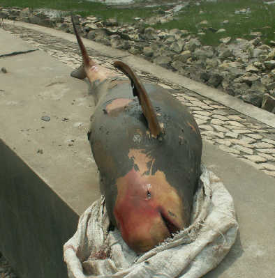 昨天,本市(上海)崇明島發(fā)現(xiàn)一只1.82米長(zhǎng),擱淺死亡的罕見巨型江豚,一些當(dāng)?shù)貪O民撿獲后,原打算運(yùn)回家中作為美食,被邊防民警及時(shí)發(fā)現(xiàn)并制止。