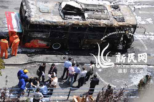 目擊者稱上海公交車發生爆燃時后門未能打開(圖)