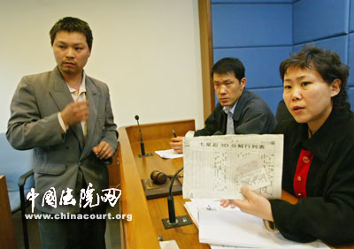 上午9:00,汪亮解在兩名代理律師的陪同下進(jìn)入法庭,國家體育總局體育彩票管理中心和北京市體育彩票管理中心的三位代理人也先后到庭應(yīng)訴。記者注意到,北京一中院民二庭的高平庭長擔(dān)任此案的審判長,與一位人民陪審員和一位法官組成了合議庭。正式開庭審理前,王亮解小心地從懷中掏出中獎的彩票和一張彩民周刊的剪報交給了代理律師,面對境頭,汪亮解有些局促,有記者想讓他說幾句,汪亮解用濃重的家鄉(xiāng)話說,他心里很亂,等會兒再說。