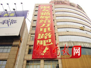 而為這次特殊的“求婚”,戴先生說他前后已經準備了一周的時間。條幅做好后,他先后在鼓樓廣場附近找了好幾家大廈,但由于種種原因沒有掛成,最后,當他把想法告訴金龍大廈負責人后,馬上得到了同意。當天上午,他和朋友等5個人花了1個半小時,才把條幅掛好。而對于條幅上面為什么只注明網名、而不寫雙方的真實姓名,戴先生說:“我們相識于網絡,是通過網名相戀的。再者,求婚是對女友一個人,只要她心知肚明就行了。”